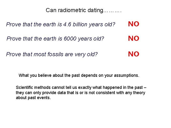 4gx7mgkku2tkxm from image.slidesharecdn.com The radiocarbon dating method is based on the rate of decay of the radioactive or unstable 14 c which is formed in the upper atmosphere through the effect of cosmic ray neutrons upon nitrogen 14. Radiometric dating is a much misunderstood phenomenon. The decay rate is referring to radioactive decay, which is the process by which an unstable atomic nucleus loses energy by releasing radiation. Radiometric age dating thermal ionization mass spectrometer used in radiometric dating. Index of origins resources by topic; Since it is a stochastic (random) process, the decay rate of a particular atom cannot be predicted, but it can be for a group of atoms of the same element and this is the basis of radiometric dating. Radiometric dating (often called radioactive dating) is a technique used to date materials such as rocks or carbon, usually based on a comparison between the observed abundance of a naturally occurring radioactive isotope and its decay products, using known decay rates. And since the only rocks which yield ages in excess of 100,000 years are of volcanic origin, this method of dating the earth is not based on science, but rather speculation and subjective.